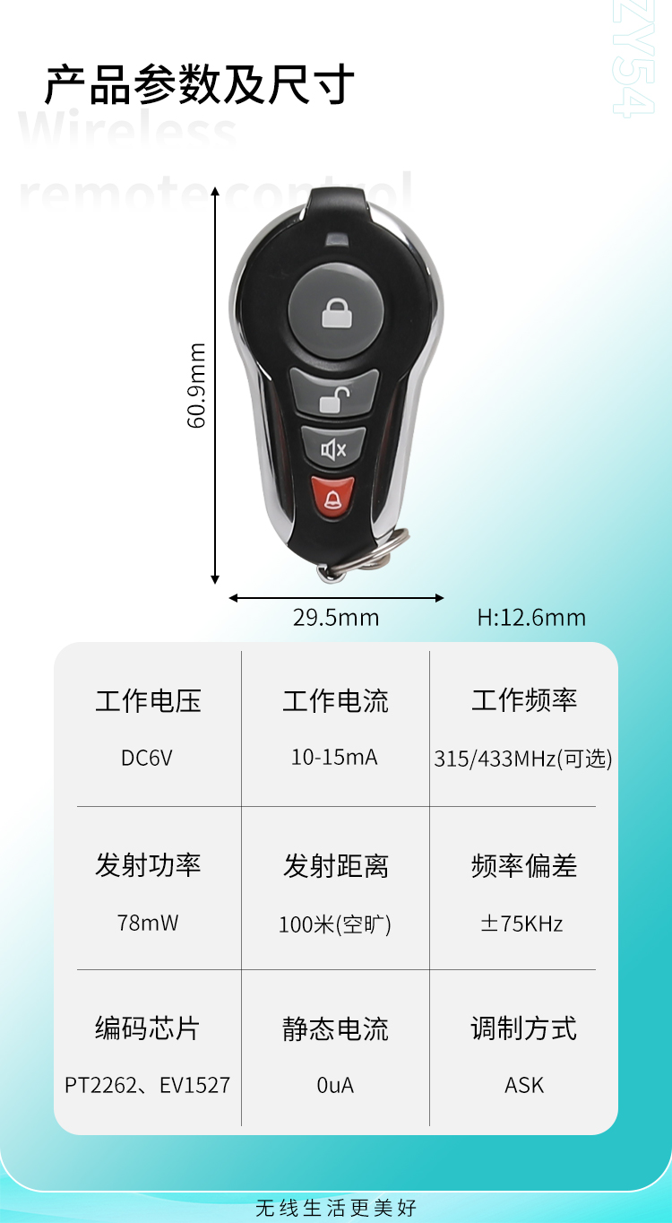 ZY54是一款小功率91短视频版在线观看免费遥控器,具有可靠性高、频率稳定、穿透能力强等特点;