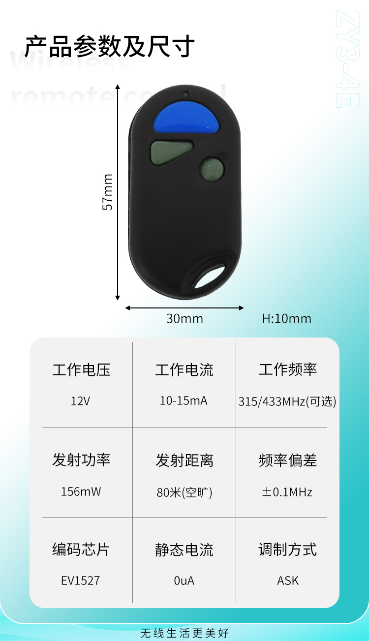 ZY3-4E是一款可防水91短视频版在线观看免费遥控器,具有可靠性高、频率稳定、穿透能力强等特点;