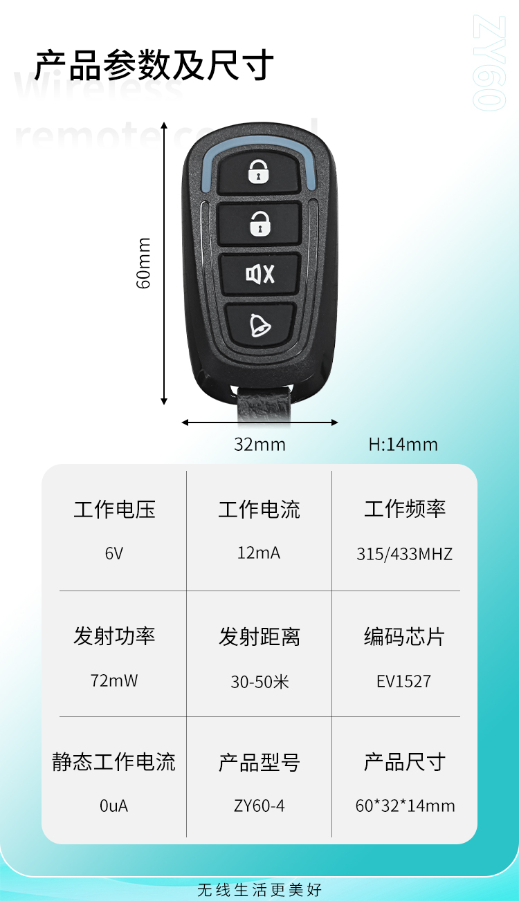 ZY60是一款小功率91短视频版在线观看免费遥控器,具有可靠性高、频率稳定、穿透能力强等特点;